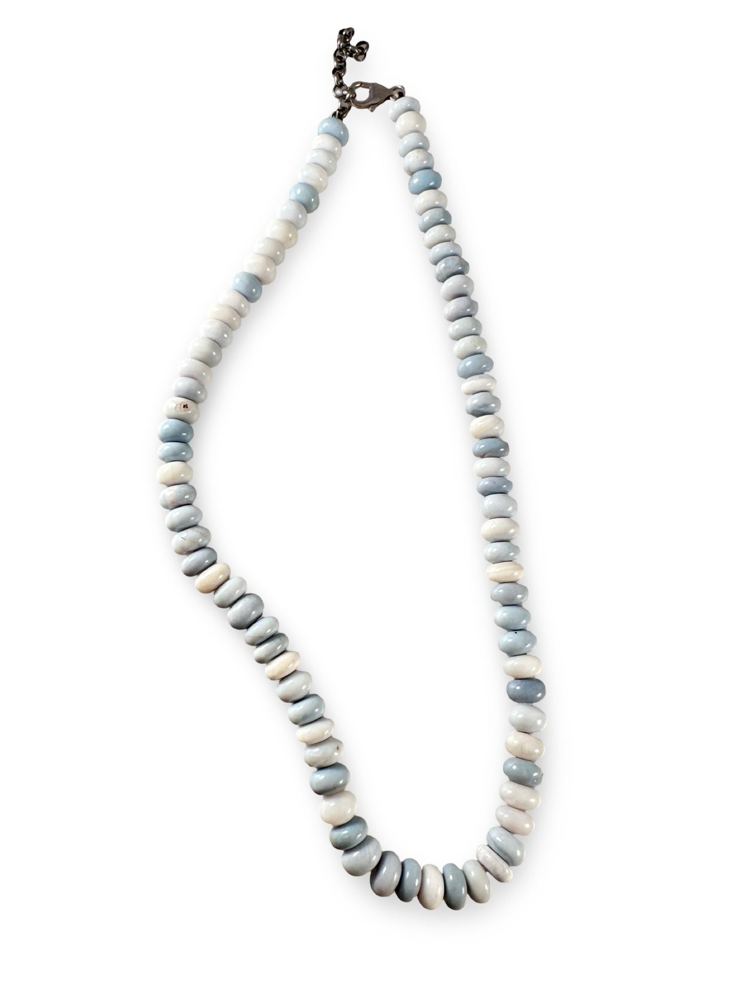16” Soft Blues Peruvian opal, sterling lobster claw and extender chain.
